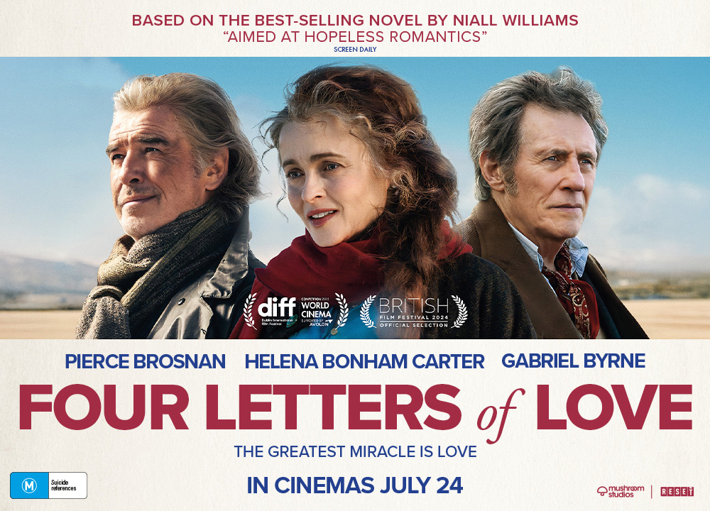 We’ve got FIVE double passes to give away for the upcoming film FOUR LETTERS OF LOVE, starring Pierce Brosnan and Helena Bonham Carter.